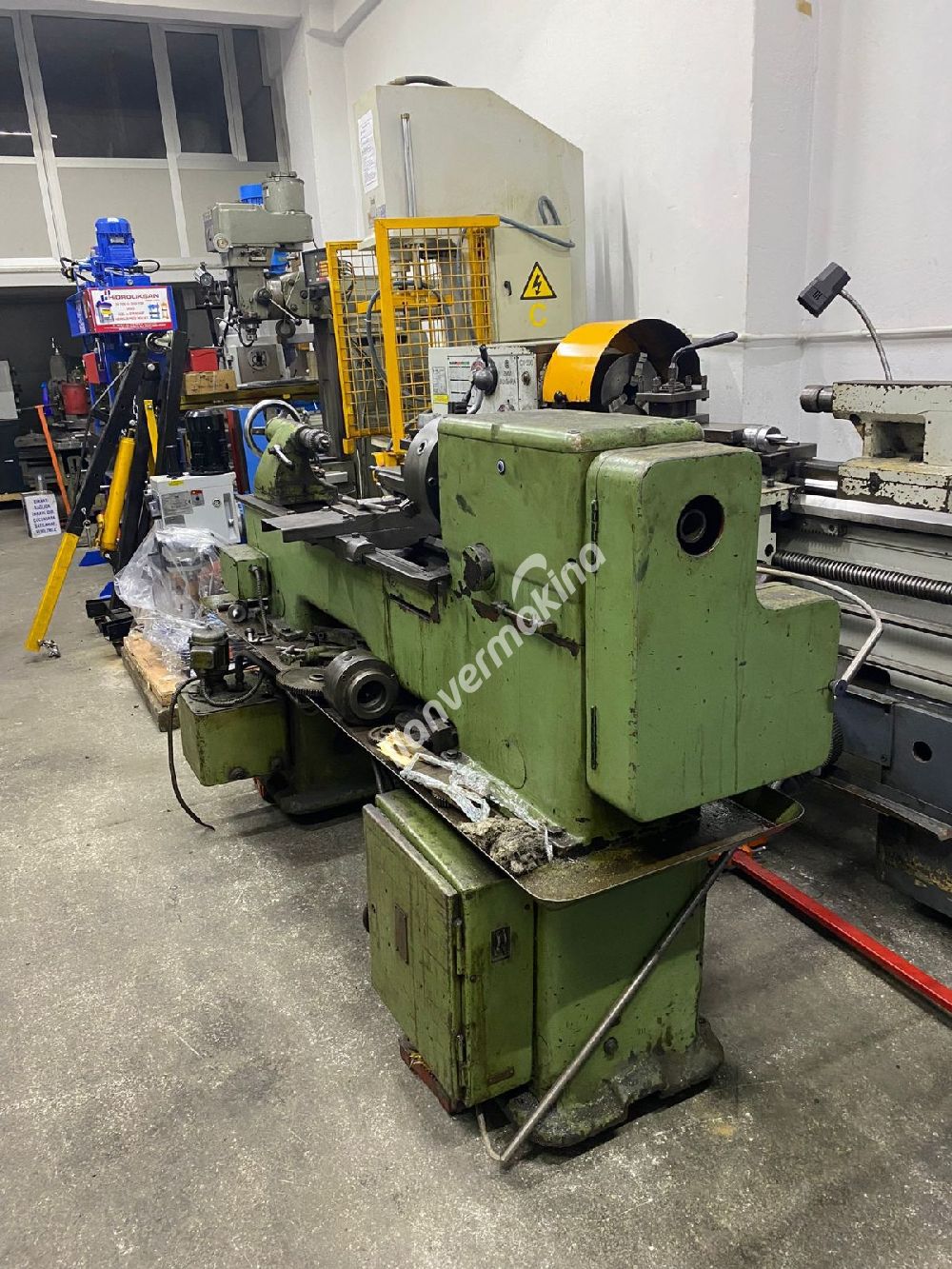 Nr.19243 Çap Torna Tezgahı Marka: Alman Ayna Çapı: 500 mm Yatak üstü çapı: 1000 mm Fener mili: 80 mm