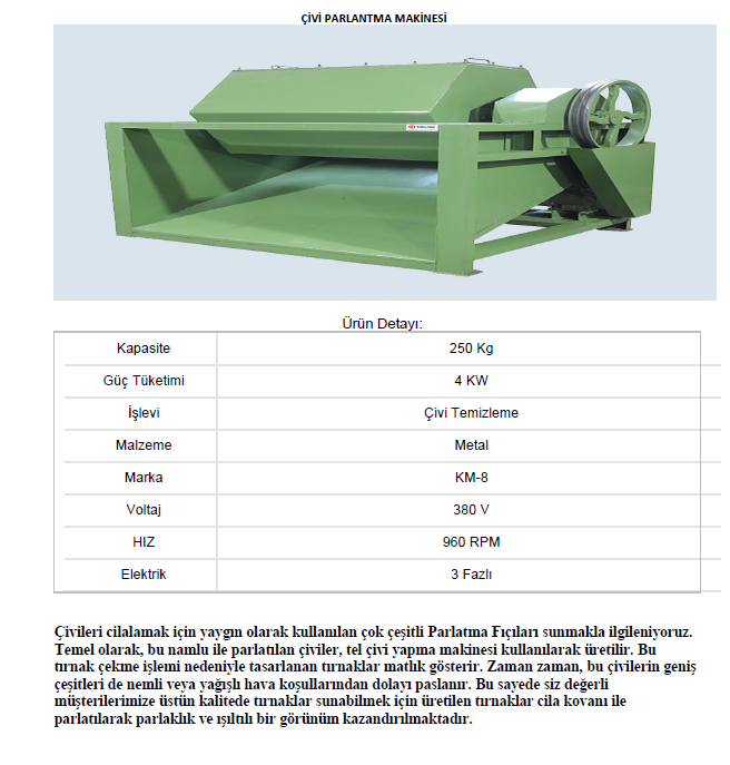 Çivi Parlatma Makinesi