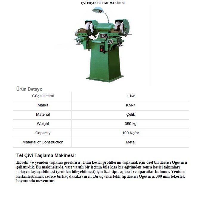 Çivi Bıçak Bileme Makinesi