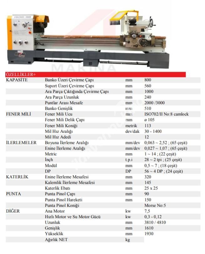• 800 Çap 3 Metre Torna